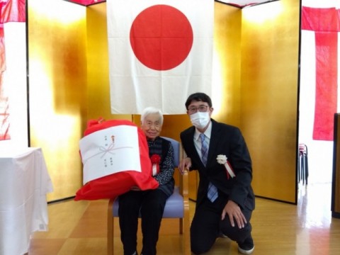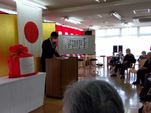 (本館におきましては、感染症蔓延防止の為、後日お祝い品の贈呈のみ行いました)